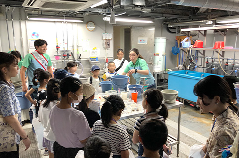 - 年1回、サンシャインシティグループの従業員とそのご家族を職場に招待するイベントを開催しています。家族に職場を見てもらうことで、仕事への理解を深めるとともに、家庭と職場の両立を大切にする風土を育んでいます。